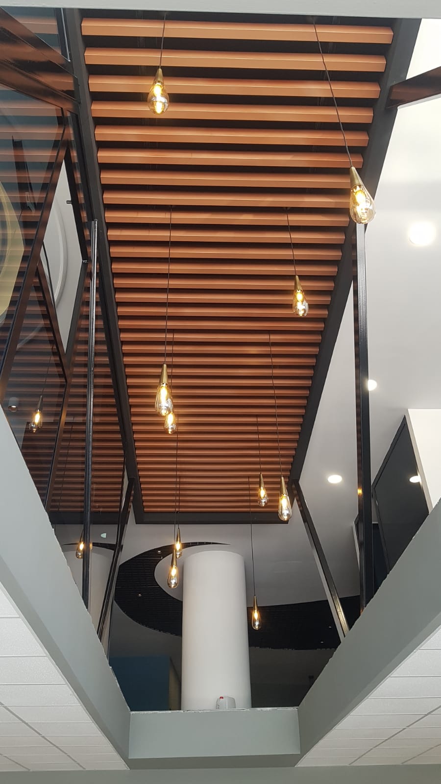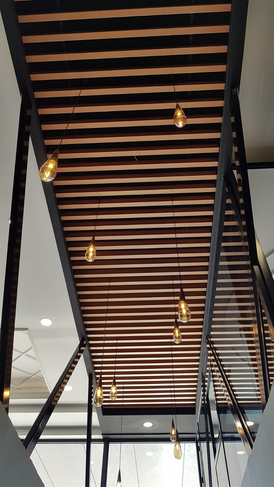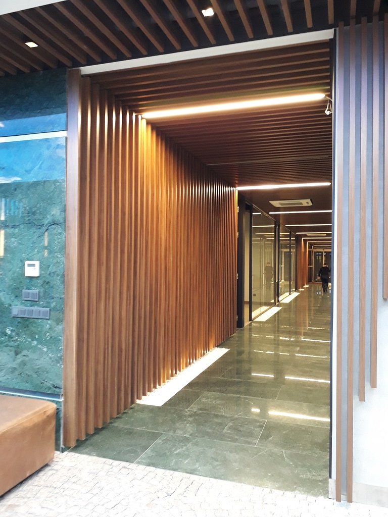 Ahşap desenli metal Baffle(bölme) paneller, ahşaba kıyasla daha uzun ömürlüdür ve bakımı daha kolaydır.